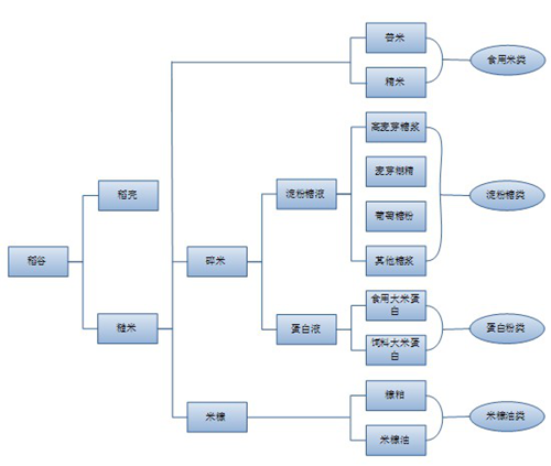 目前,国内稻米及其副产品深加工主要产品分类如下: