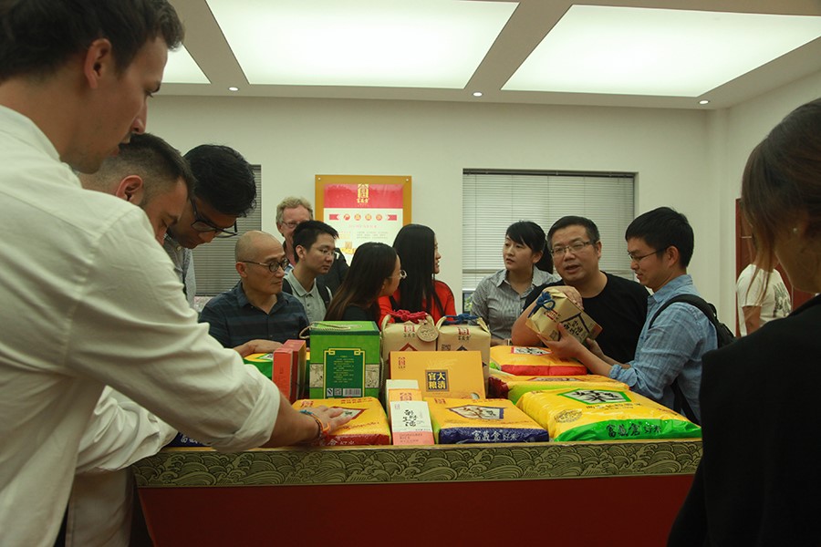 9月21日上午,浙江大学管理学院和德国GSO商学院的学员们来到杭州富义仓米业进行交流访问。访问团中有来自中国、美国、德国、澳大利亚、印度、南非、伊朗、智利等国家的学员。俨然一个小“联合国”。